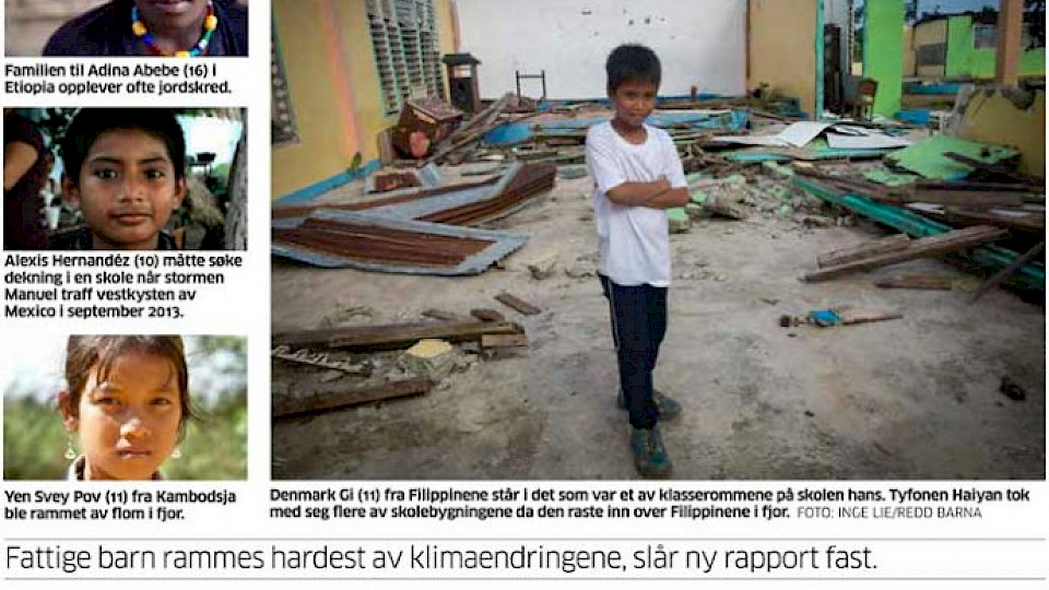 Aftenposten (s. 12) omtaler Vista Analyses rapport for Redd Barna. "Det er mye tøffere å være barn enn voksen under katastrofer", skriver avisen.